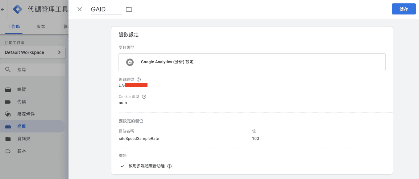 指定網站追蹤的用戶百分比。預設值為100。大流量網站可以降低讓 Google Analytics 保持在資料處理限制之內。